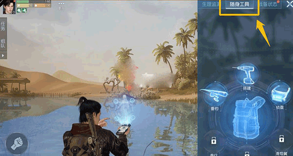 有了鱼竿以及鱼饵之后,小伙伴们就可以打开生存界面的【随身工具】,然后找到一处钓鱼点,再点击其中的【垂钓】,就可以进行钓鱼了。