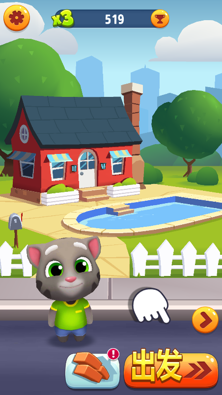 在角色方面,玩家可以解锁会说话的安吉拉、贝卡兔等角色,为他们建造和升级家园。游戏的操作界面也很友好,点击屏幕下方的砖头就能进入建筑升级界面,根据自己的财力选择主建筑或布景升级。新手也能快速上手,玩法简单易懂,就是传统的竖屏3D跑酷模式。