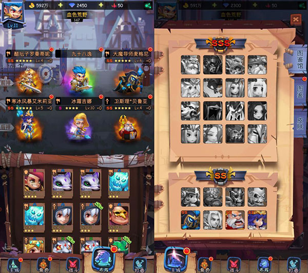 2.合成馆,玩家可以在合成馆合成sss级的英雄,需要600点血精,和2万的羁绊值,血精石会在每一次的十连抽后赠送一些,而羁绊值可以通过分解英雄和刷活动得来。合成馆中的sss级英雄定期更换,但也有不更换的,比如正义和元素。