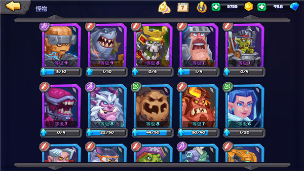 每个怪物的等级上限都是20级,具体的升级方式是凑齐足够的同名怪物卡即可,由于怪物拥有品质之分,因此绿卡、蓝卡、紫卡和橙卡的培养难度一次递增,大家培养前要先考虑清楚哦~