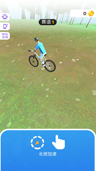 1、下载后打开进入游戏,长按屏幕是游戏开始,也是自行车加速