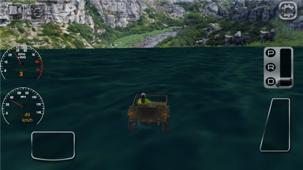5、4X4越野拉力赛采用重力感应与虚拟按键相结合的方式。但是需要注意的是,按住油门时会出现红色的指示,当红色越高,汽车的速度也会越快。