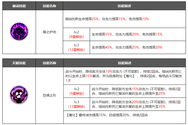 在角色培养到十星之后可以解锁觉醒界面,可以理解为花费资源升级觉醒等级,然后解锁更加强力的技能.觉技能一般是在原有技能的基础上进行数值的增加,或者新增各种增益/减益效果,大部分都是被动技能,解锁之后能大幅提升角色的战斗力。