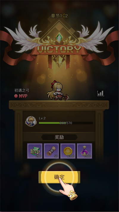 4、战斗胜利获得药水和装备,可以给自己升级了;