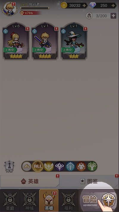6、升级完成之后,点击右下角冒险;