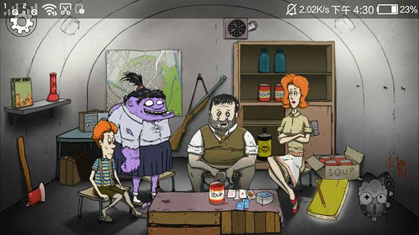 收音机与军方取得联系——地图/手电/扑克牌随机一样提供避难所的位置——斧子/枪随机砍树或缴枪(道具会消耗掉)——派一个人与军队碰面——军队前来敲门营救