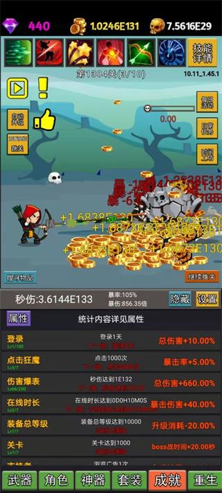 挂不完的机是一款超好玩的点击挂机游戏,战斗内核采用经典放置游戏《Clicker Heroes》的理念,体验不断成长不断变强的快感。另外游戏中加入了一定的恶搞元素,给玩家带来不一样的体验。该游戏拥有简约的画风,再加上一键挂机挑战的模式,带给玩家超级轻松的游戏乐趣。甚至还有十分丰富的关卡值得您来挑战。一定要记得捡拾满地的装备,从而来提升自己的等级。同时在这里还有各样的精彩和有意思的全新感受,都可以给玩家的游戏感受带来极大的提升,并且在这里所有的玩家都是可以来这里进行冒险和闯关。游戏上手也非常简单,剧情的设计也十分的丰富,玩家在冒险模式下可以对不同角色进行培养,完全是看你的乐趣,可以说是十分的放松。