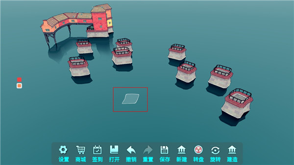 3、当水面上出现如下图标识时,玩家可以通过点击来进行水上建筑的建造。
