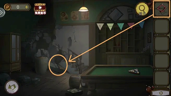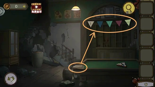 5、台球桌上拿到【报纸】,根据报纸上的提示,调整旗子的顺序,拿到画框上的【钉子】。
