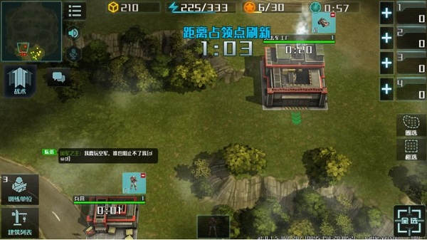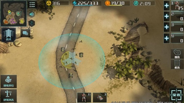 游戏中最为经典的模式莫过于3V3,在该模式中可以享受更多人作战,打击感和画面作战感相对也有所提升。以一局3V3为例,开局在建造基础设施(发电厂、补给中心、兵营、突击车工厂)后与队友协商后期所玩兵种。这个开局协商是很有必要的,对中后期作战布局和进攻起决定性作用。