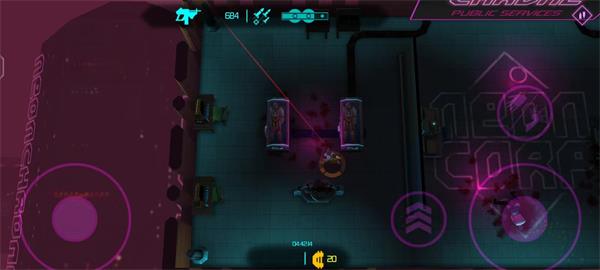 朋克大暴走中文版是一款无限的双摇杆自上而下的射击游戏,又叫做Neon Chrome,游戏主打赛博朋克风格,以紫色和蓝色为主色调,搭配着极简风格的设计图标、再加上高科技的建筑和物品,给人一种未来电子游戏的即视感,科幻感十足,战斗发生在充满科技感的神秘场所,玩法简单且十分粗暴,玩家只需前往各个任务地点展开一系列的扫荡,一层接着一层,消灭所有潜在敌人即可。