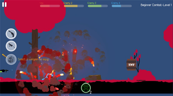 游戏支持2-4名玩家进行在线对战,玩家可以操控任意单位,通过物理效果进行攻击和防御等一系列操作。决斗火柴人游戏战斗中除了可以充分利用物理特性及各色创意地图等改变局势,更多的是考验你和小伙伴们之间的默契与配合,是同生共死还是菜鸟互坑,这是一场别开生面的友谊挑战赛,你敢应战吗?