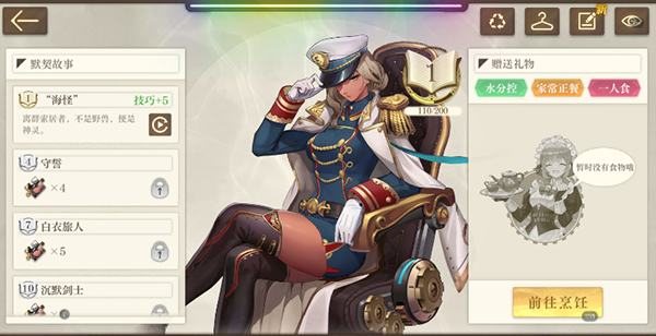 默契:需要赠送角色食物来提升默契度,默契等级提升之后能够获取技巧数值的加成,还能够获取大量的角色碎片,不过食材获取比较麻烦,购买的话太贵,除非遇到了瓶颈,已经找不到其他提升的方式的时候再来考虑提升默契。