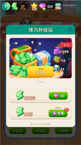 钻石买100体力;