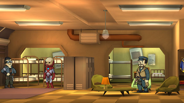 派遣您的居民到地面上,去探索被炸毁后的地面废墟,让他们在“废土”中冒险,寻找可用的幸存物,或是直面无言的死亡;找到新的装甲和武器,增长经验,然后赚取“瓶盖”。但记住,不要让他们死掉!
