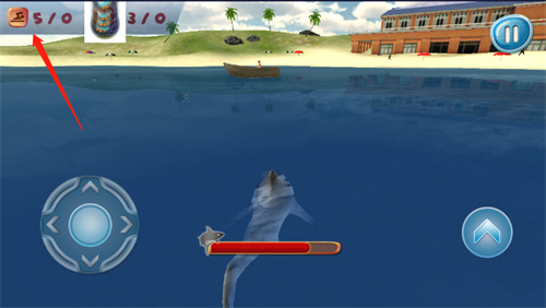 4、左侧为方向按钮,你可以控制鲨鱼的前进方向,右侧可以进行冲刺;