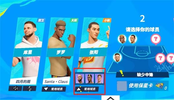 (2)匹配成功后选择球员与11分赛不同,各位巨星需要匹配进入巅峰赛后,再进行球员选择。此外,各位巨星可以看到队友的位置选择,同一球员无法被重复选择,当到达传奇巨星段位,会开启征召模式,届时比赛双方需要轮流选球员,需要注意合理搭配阵容。