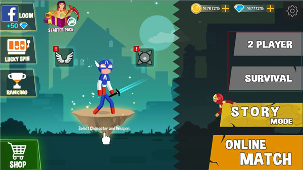 2、在这里你还可以和你的好友一较高下,或是选择你最喜欢的武器,挑战你的极限;