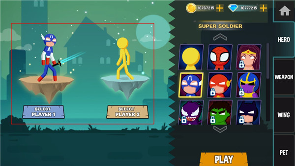 蜘蛛火柴人格斗是一款格斗冒险闯关游戏,游戏采用的是简洁的火柴人画风,并且以经典的蜘蛛人和火柴人为人物原型,能为玩家带来乐趣无穷的体验。其中游戏里面有超丰富的角色供你进行选择,并且不同的角色都会有不同的技能,这些技能都是可以升级的,这样的话就可以让自己变的更加强大,不过在你变强大的同时敌人也会变强大,所以你还需要合理的使用各种技巧,然后成功击败对手。如果你是一个手残党但又想体验格斗游戏的魅力的话也是可以的,游戏中拥有许多武器和道具,能让你简单粗暴的击败敌人。而且在这款游戏中你还可以邀请你的好友进行联机对决,赶快来与你的好友一较高下吧。