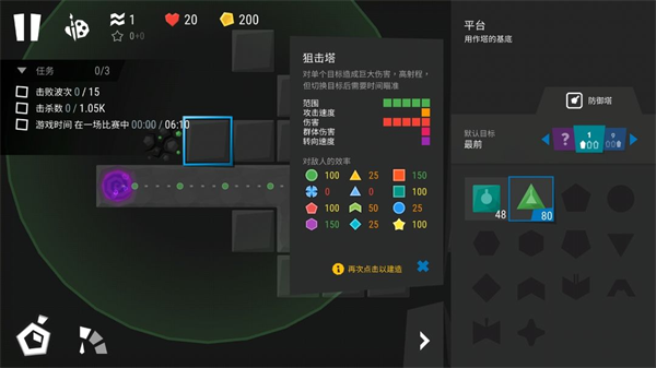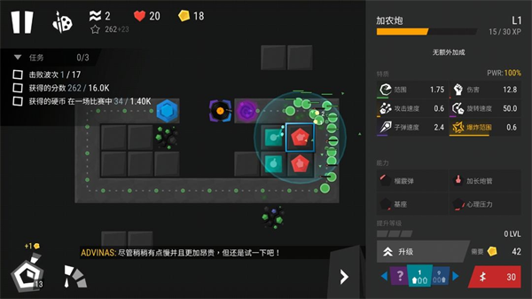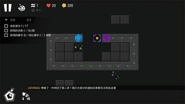 我建议过关优先级为拿星、刷资源、冲分1.1会来两怪,分别是普通(小绿)和强壮(黄方)普通:基础塔对他非常有效,其他高级塔对他都有轻微的抗性强壮:拥有高生命并对子弹有一定抗性补图: