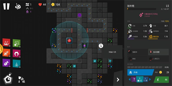加农炮的范围很小但拥有对密集的怪物造成群体伤害,我们需要拿基础塔配合