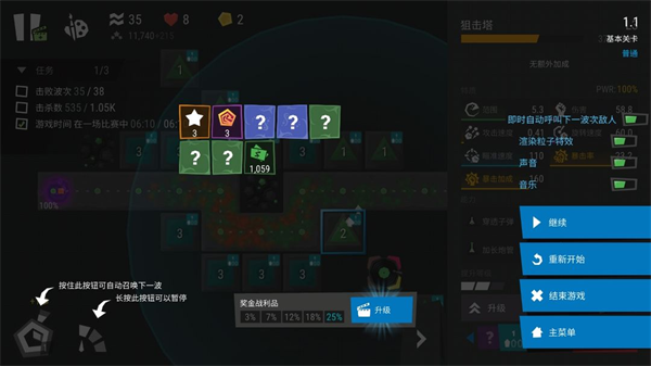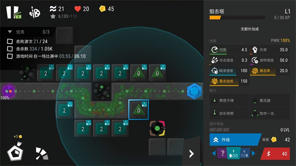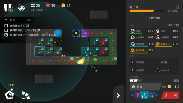 建议选双枪或加大口径,狙击塔选重武器。防御塔升级为基础到2才去升狙击