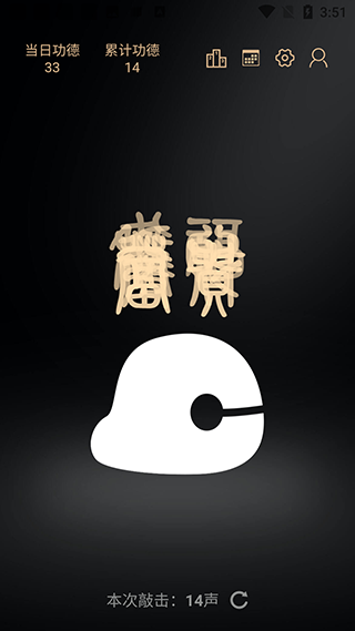 2、屏幕上方会累计当日的功德和累计的功德,底部会显示当下敲击的次数,点击可以重置。