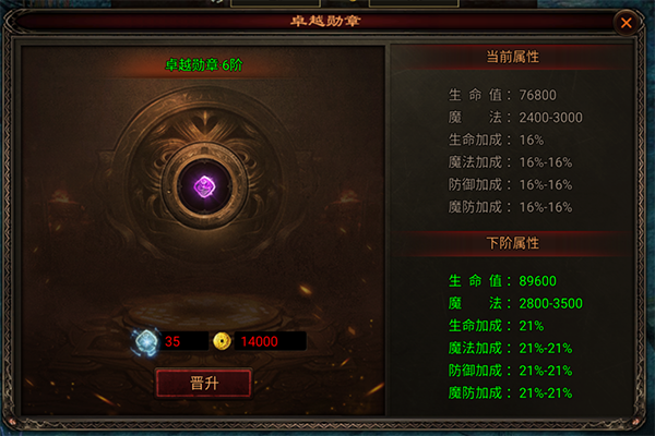 卓越勋章是进化元神不可或缺的一步,勇士们可以通过至尊祈福、元宝商城、每日活跃获取勋章结晶,用于强化卓越勋章,大幅提升战力噢!