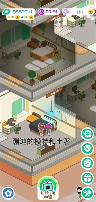 3、购买新的房子,解锁更大的规模,整个游戏的乐趣也会更加的丰富。