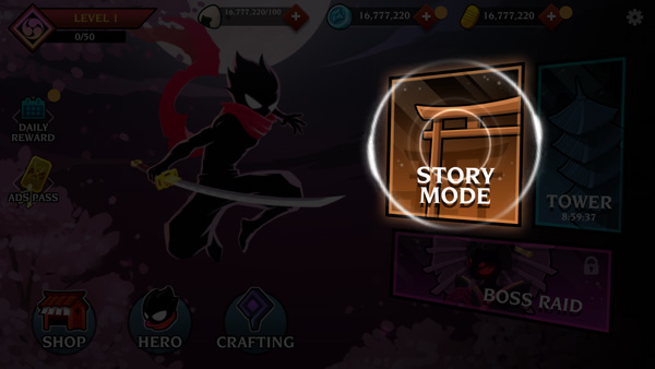 1、打开火柴人复仇4史诗战争,点击story mode开始;