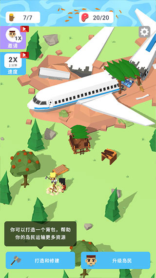 这款游戏叫《空难求生记》,听起来挺刺激的吧?你扮演一个飞机失事后的幸存者,在荒岛上生存并想办法回家。游戏里你可以采矿、造工具、盖房子,还能驯养岛民帮忙干活。升级工具和岛民能让你更快完成任务。比如召唤空投或扩建飞机残骸里的小屋,这些都能增加食物储存,挺有策略感的。