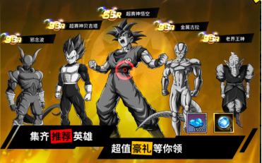 7、充值比例1:500!上线送8级Z战士,送10万充值、顶级UR贝吉塔·超蓝、百连抽、648养老金x100、超赛材料包。