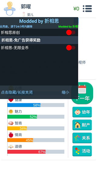 1、一款轻度模拟人生的休闲游戏,从婴儿到死亡的全部过程,你的选择将决定你的未来