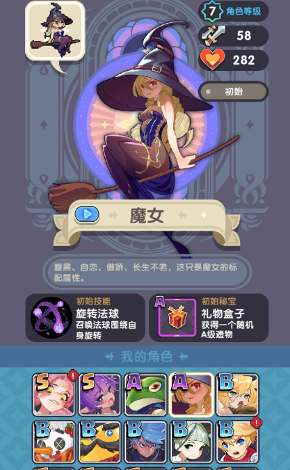 第三个推荐的是魔女,此魔女处于A级,他的旋转法球萦绕自身,可以让自己在一定范围内免受敌人伤害的同时提升自身的攻击力。适合新手使用,还可以在挑战中随机获得A级遗物。