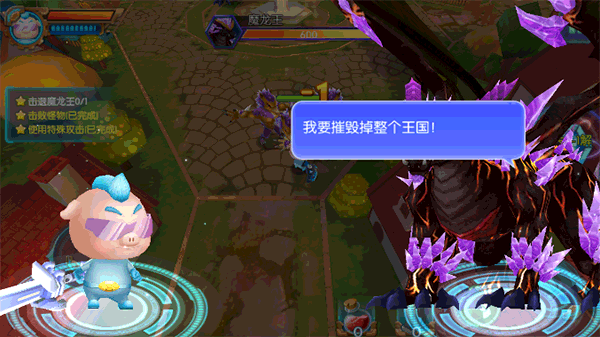 6、猪猪侠与魔界妖怪相互之间的对战开始了!为了更好地抵御魔界侵入童话王国,做为光明守卫者的猪猪侠们即将与魔龙王进行血战。
