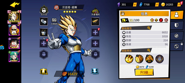5、超赛神孙悟空、超赛神贝吉塔、黑悟空、自在极意功悟空、沙鲁。