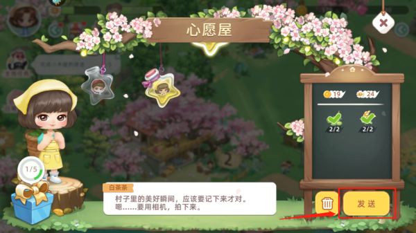 10、可以看到村民需要的东西,收集完成点击发送,送至村名手中,获取奖励
