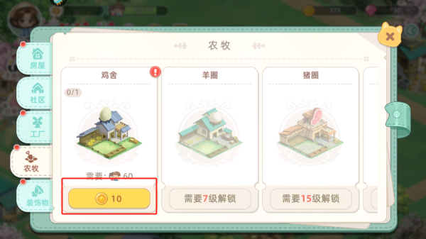 5、找到鸡舍,使用金币进行建造