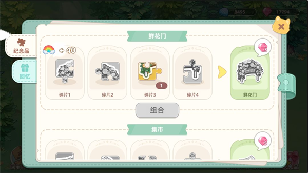五、宠物旅行归来会带回纪念品碎片,碎片可在宠物场景右下角的“纪念品”处点击查看,集齐碎片还可以获得额外的钻石及宝箱奖励。