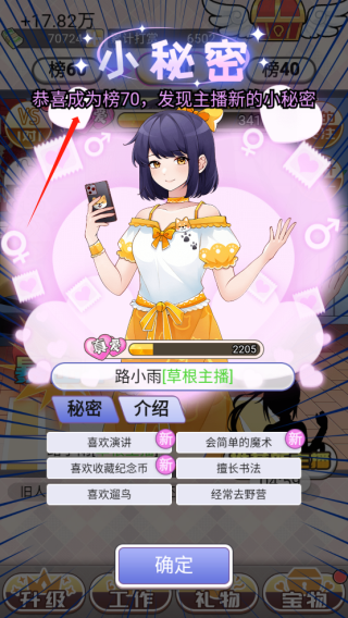 最近发现一款超好玩的游戏叫榜一模拟器,完全停不下来!这游戏主要是模拟直播间的互动和竞争,玩家可以在里面和各种漂亮的小姐姐聊天、送礼物,体验真实的直播间氛围。最有趣的是,你还能和其他人竞争,争夺榜一的位置,赢了的话还能解锁主播的小秘密,感觉特别有成就感。