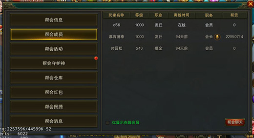 可以在成员列表中查看帮会成员信息,进行职位变更等操作