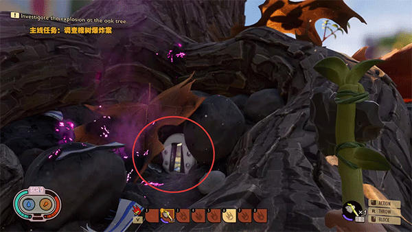 挡住激光的叶子需要用斧头砍掉即可完成