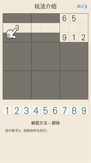 选中数字3,观察他的所在行,由于一行只能有一个3,所以其他单元格不可能是3