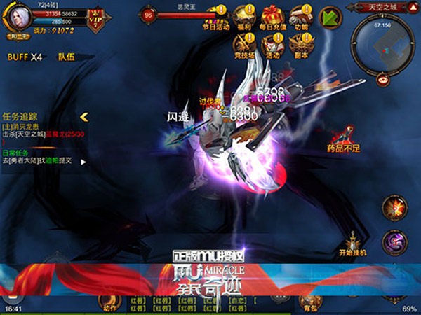 游戏在操作上的设计十分简单,左手摇杆控制人物移动,右手按键控制人物释放四个技能。在游戏中玩家只需对准目标,轻按技能,华丽的技能效果就会瞬间喷发在屏幕上,而且提系统供了6种技能供玩家随心搭配。此外,为了方便玩家偷懒游戏,全民奇迹提供了耳熟能详的挂机系统。你只要开启此系统就可轻松挂机啦!应该说,本作的操作很流畅,挂机、pk、打怪、打本应有尽有!