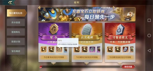 需要注意的是,占领矿点会消耗军令,每天有免费的3个,另外每日累充充值到达一定额度,还会有额外的军令赠送。