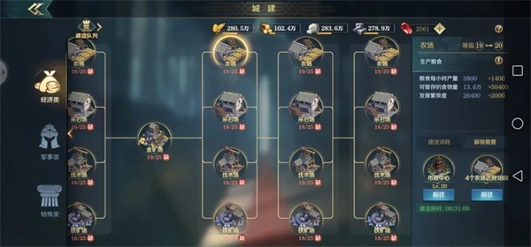 因为前期的资源收入非常有限,所以可以根据系统提示的解锁需求走,优先升级市政中心的解锁需求,在要求以外的建筑一律靠后。