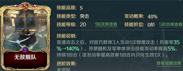 那么第二个技能选择,可以选择如长船入侵、无敌舰队等带一定辅助效果的突击技能。