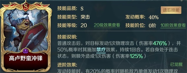 以及处于连击状态下会造成额外伤害且概率施加禁疗的高卢野蛮冲锋。