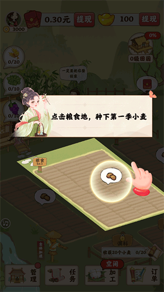 2、可以先点击土地种植第一季节的小麦,因为小麦成熟的比较慢所以要点击加速小麦成长;