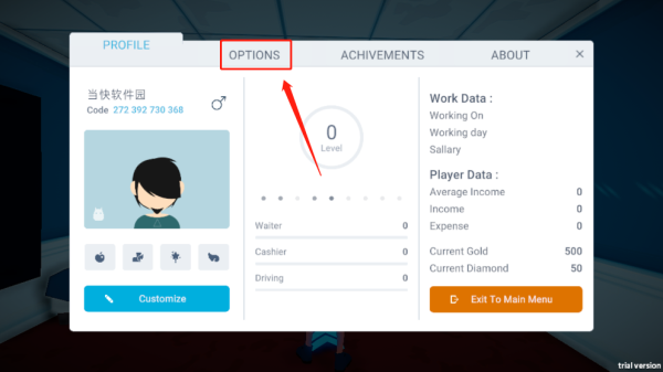 1、下载安装失业生活游戏,进入游戏,首先可以为自己的角色取一个名字以及设置外形进入游戏
